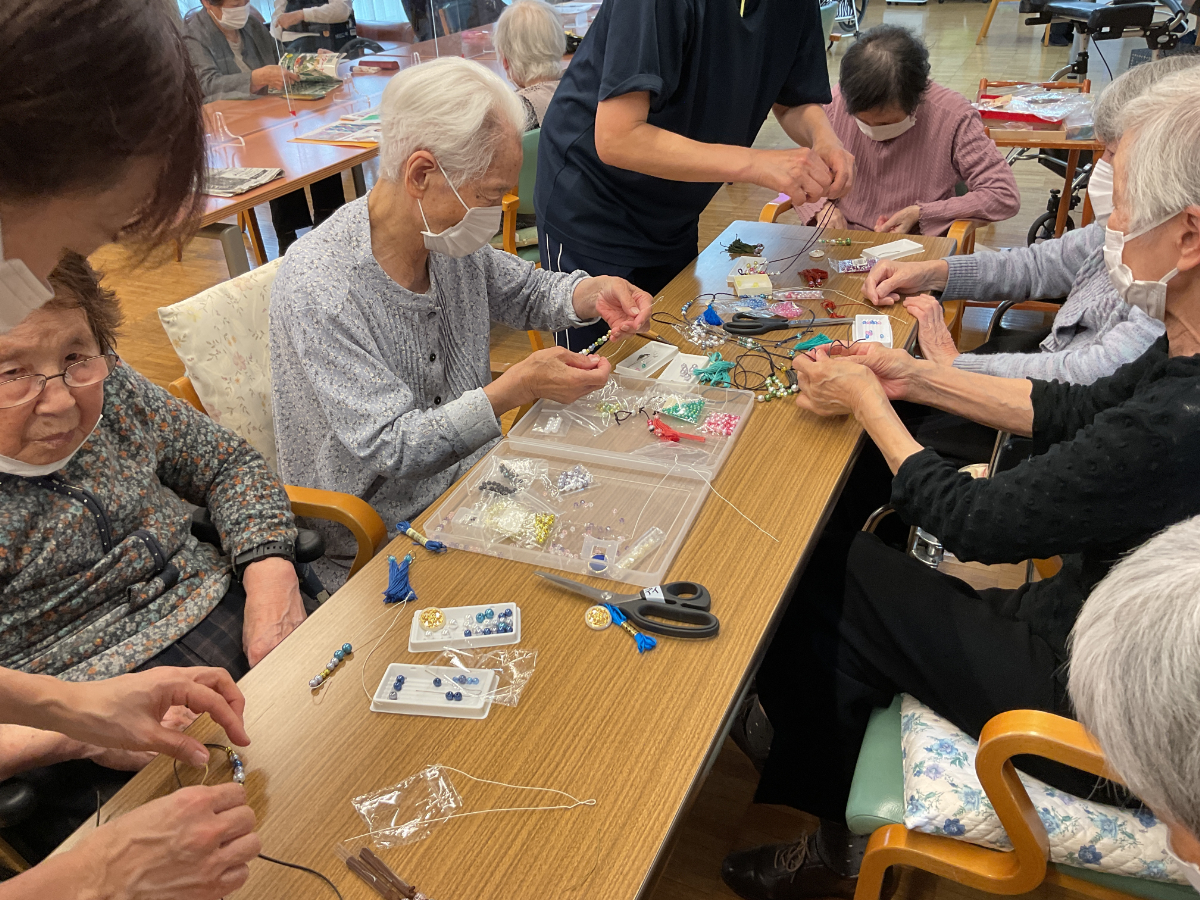 今回の創作クラブはネックレスを作りました。